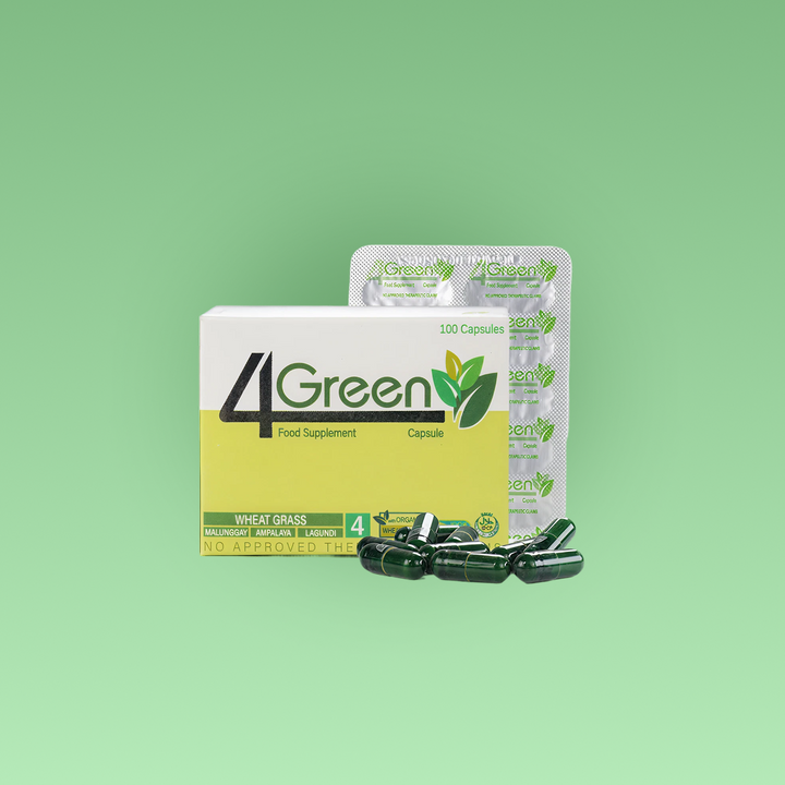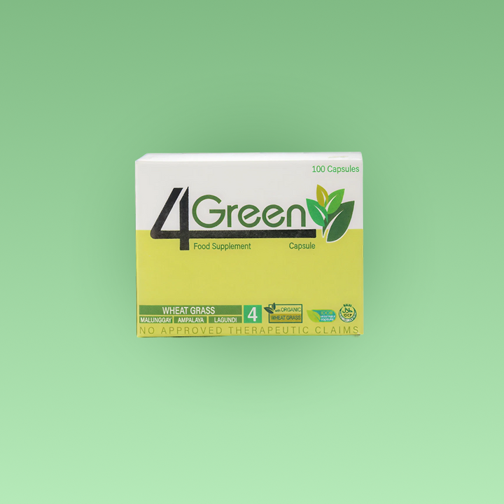"4Green contains Wheat Grass, Malunggay, Ampalaya and Lagundi. These four plants were combined together to create the overall cleansing supplement of the digestive and circulatory system. It helps alkalize and eliminate acidity in our digestive tract. It helps neutralize the toxins in our circulatory system through the high chlorophyll content of these plants.