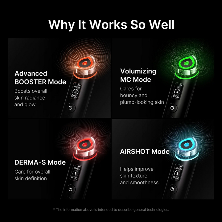 - Use 1-3 times a day: Booster Mode, MC Mode, Derma Mode